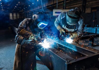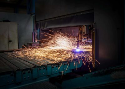 Unsere eigene Fertigung ist ein elementarer Bestandteil der Wertschöpfungskette beim Rheiner Stahlbau und eröffnet uns am Standort in Rheine die Möglichkeit, alle wesentlichen Fertigungsschritte im eigenen Haus abwickeln zu können und damit die Abhängigkeit von externen Firmen zu minimalisieren. Unsere Fertigungsteams in den Bereichen Einzelteilfertigung, Zusammenbau, Schweißerei, Beschichtung und Verladung werden dabei durch modernste Geräte und Prozesse unterstützt, von der Entzunderungsanlage, über die Brennschneideanlage bis hin zu modernsten Schweißanlagen. Für die Fertigteile können wir auf unsere Lagerflächen im Außen- sowie Innenbereich zurückgreifen.